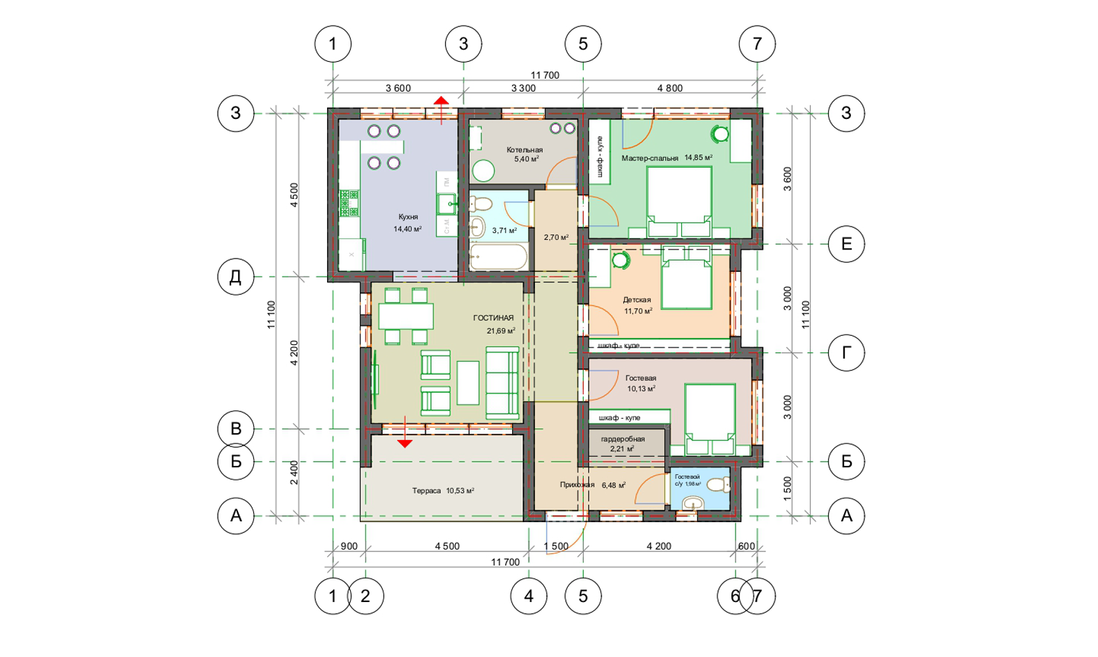Особенности: для круглогодичного проживания семьи из 4-6 человек, в качестве дома для отдыха за городом, как гостевой дом, агроусадьба или дом для сдачи в аренду