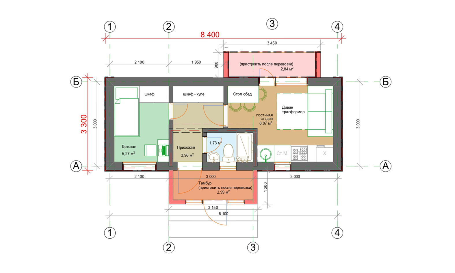 Особенности: для круглогодичного проживания за городом для 1-2 человек, в качестве дачного, гостевого дома, агроусадьбы, для сдачи в аренду