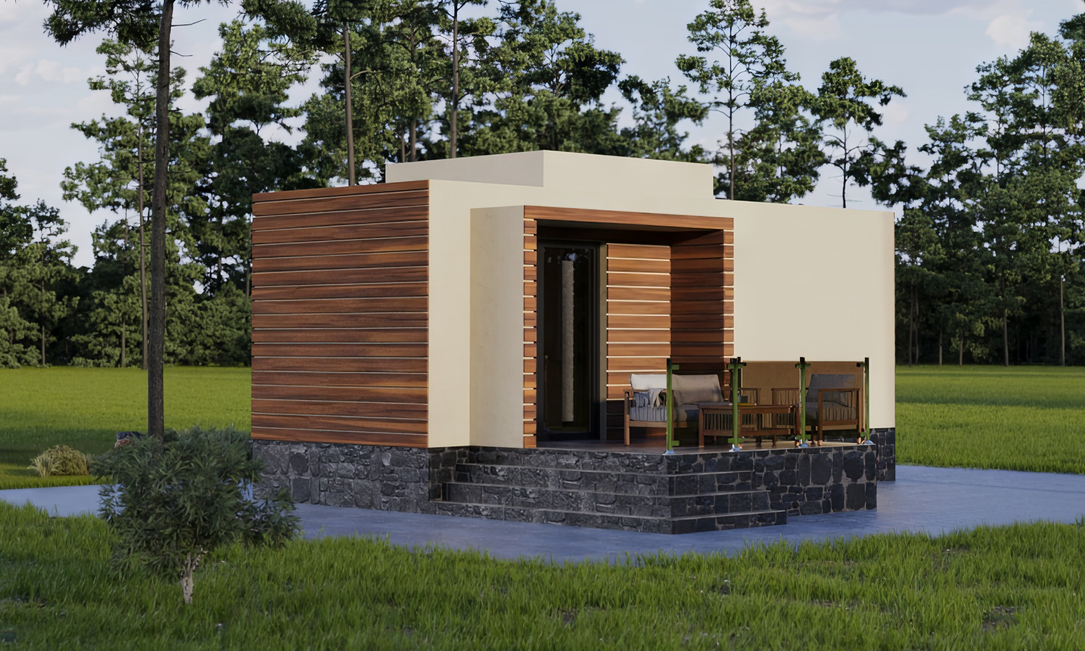 Особенности: компактное решение для первого круглогодичного проживания, в качестве гостевого домика, мастерской или творческой студии, рабочего кабинета, дачи. В туризме - для баз отдыха, глэмпинга