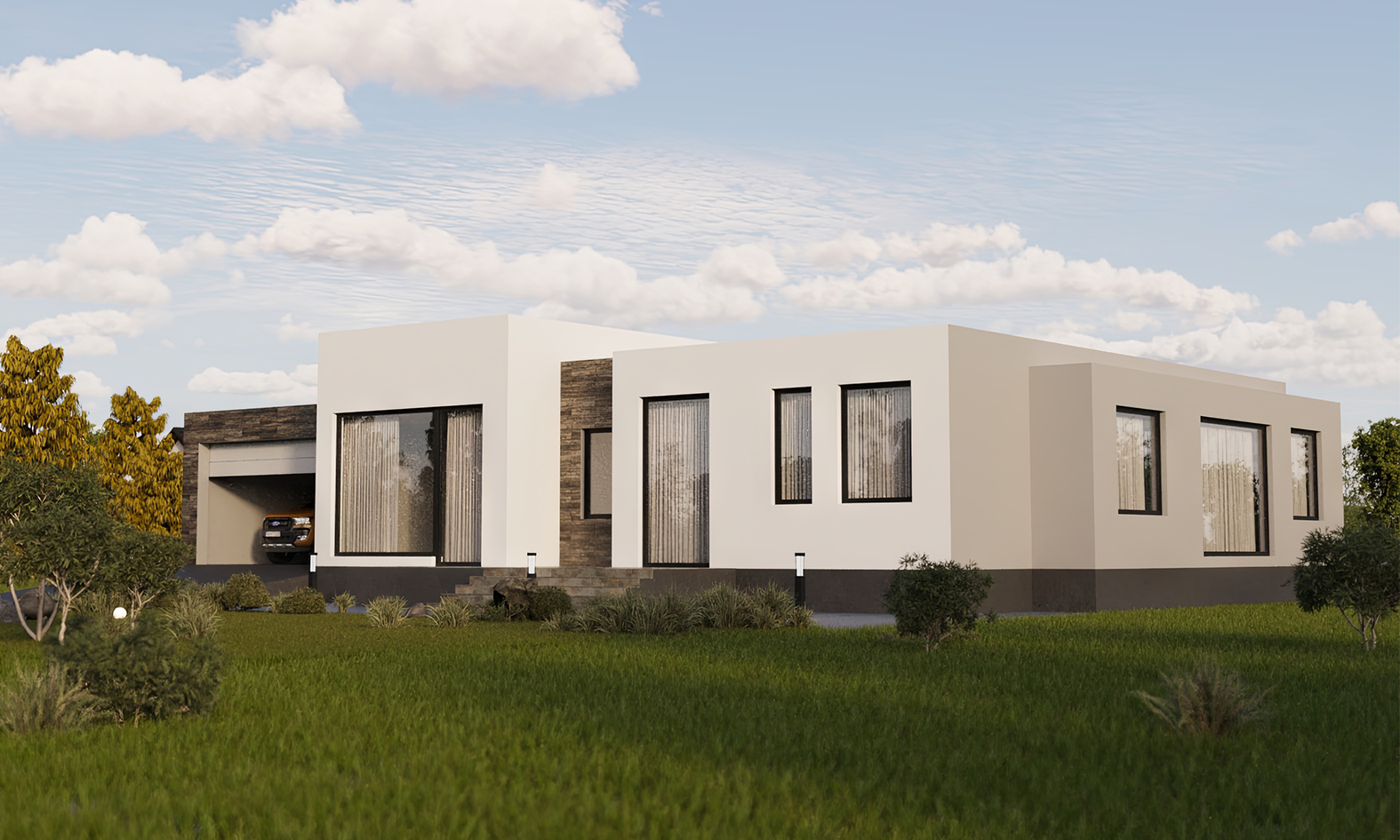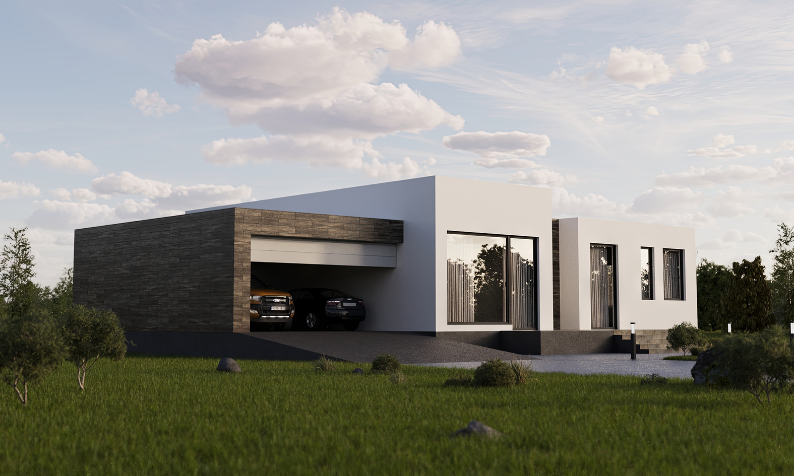Современное пространство с продуманной архитектурой и интегрированным гаражом, где все ориентировано на комфорт и удобство повседневной жизни.